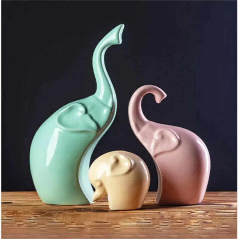BEST SELLER Family Elephant Statue Home Decor Room Ornament Porcelain Animal Figurines