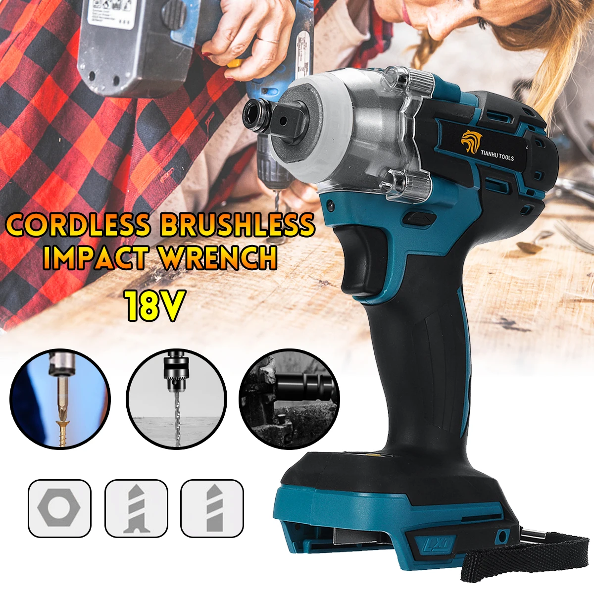 HIGH QUALITY 18V Impact Wrench Brushless Cordless Electric Wrench Power Tool 520N.m Torque Rechargeable For Maki