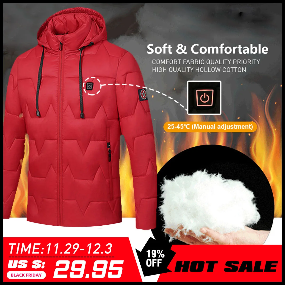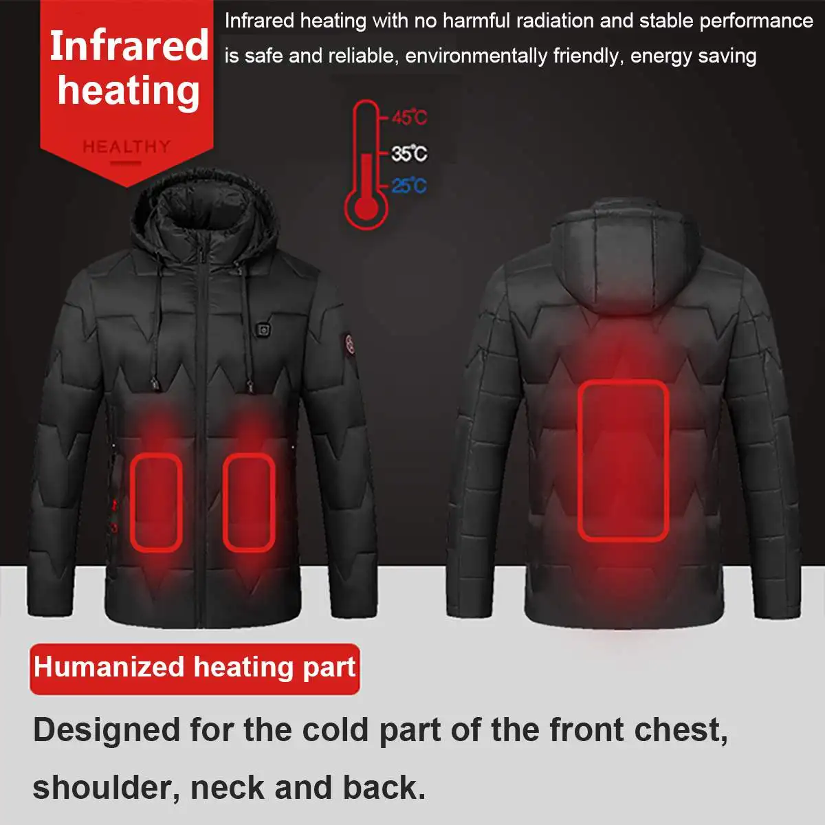 BEST USB Electric Heated Coat Jacket 8 Hours Heating Hooded Jacket Long Sleeves Winter Warm Clothing The