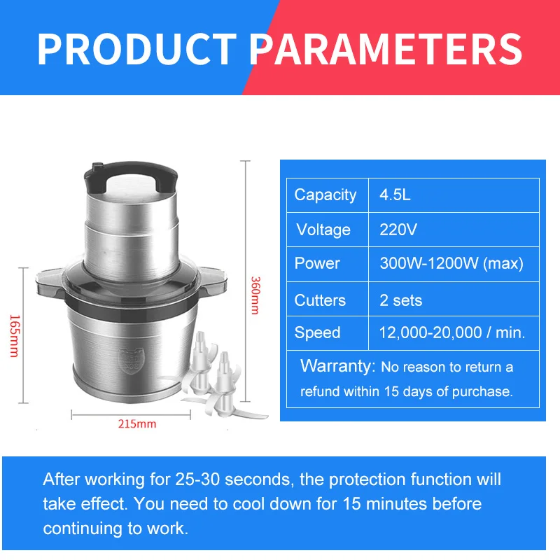 220V Stainless Steel 2 Speed 1200W(Max) 4.5L Large Capacity Mincer Meat Grinder Home Meat Grinder F
